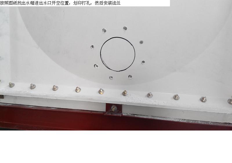 玻璃鋼水箱第五步:這樣法蘭就安裝完成了,注意:安裝所有接口法蘭,接口必須用密封膠墊和玻璃膠來(lái)密封緊固螺栓。
