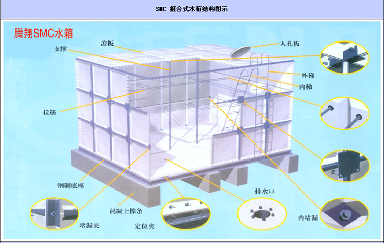 玻璃鋼水箱第二步:接下來(lái)就要放上法蘭了,注意螺栓方向是根據(jù)螺桿從水箱內(nèi)部往外穿的,向外穿螺桿時(shí)先帶平墊后帶兩層膠墊(水箱專(zhuān)用的膠條),穿出螺桿后這時(shí)添加水箱板與法蘭之間的法蘭橡膠墊,板與膠墊之間打上玻璃膠,接下來(lái)螺桿上套法蘭緊固螺母,(緊固螺母時(shí)用力不能過(guò)猛,用力均勻,使法蘭安裝在水箱板上牢靠為目的)。示意圖如下: